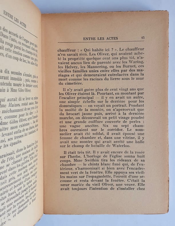 Alger Edmond Charlot 1945 in 12 (19,5x12) 1 volume broché, 223 pages, bandeau conservé, couverture uniformément jaunie. Achevé d'imprimer à la date du 5 janvier 1945. Traduit de l'anglais par Yvonne Genova. Collection ''Les Cinq Continents'', dirigée par Philippe Soupault. Virginia Woolf, née Adeline Virginia Alexandra Stephen, Londres 1882 - Rodmell 1941, femme de lettres anglaise. Bon exemplaire ( Photographies sur demande / We can send pictures of this book on simple request )