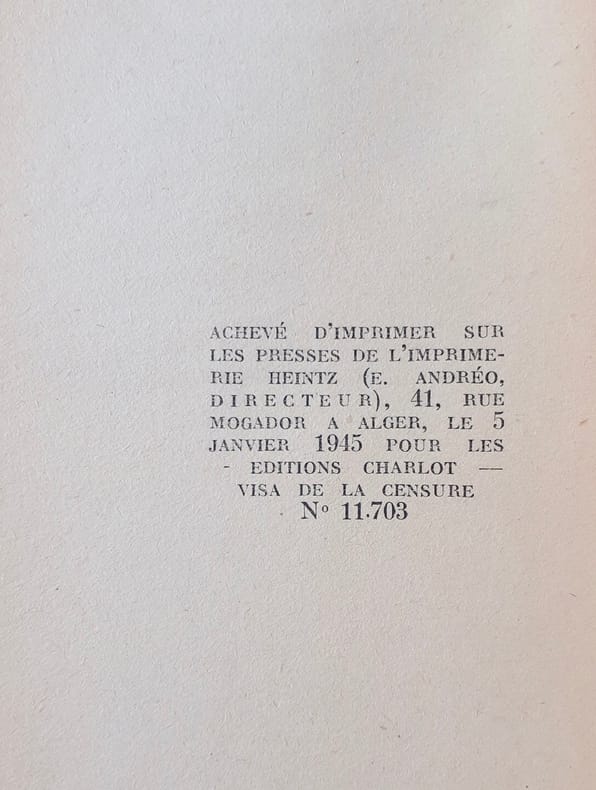 Traduit de l'anglais par Yvonne Genova. Alger : Edmond Charlot (Collection "Les cinq continents"), janvier 1945. Un volume 18,8x12cm broché de 268 pages. Dos légèrement plissé sinon exemplaire en bon état. Edition originale de la traduction française.