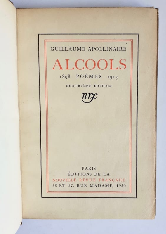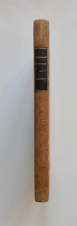 Ce recueil, qu'Apollinaire mit 15 ans à élaborer, annonce la quête de modernité, de jeu avec la tradition, de renouvellement formel de la poésie de l'auteur. Alcools constitue donc un recueil pluriel, polyphonique, qui explore de nombreux aspects de la poésie, allant de l'élégie au vers libre, mélangeant le quotidien aux paysages rhénans dans une poésie qui se veut expérimentale, alliant une quasi-perfection formelle et une grande beauté à un hermétisme, un art du choc, de l'électrochoc, qui valut à Apollinaire d'être qualifié de mystificateur. Alcools montre le poète déchiré sentimentalement par la rupture amoureuse, que l'histoire littéraire a retenue à travers des poèmes tels que Mai, Les Colchiques et, surtout, La Chanson du Mal Aimé. Après avoir assisté à une lecture par Blaise Cendrars de sa future publication, La Prose du transsibérien et de la petite Jehanne de France, Apollinaire décida de transformer à son tour son futur recueil. Il y plaça Zone en ouverture, ce qui lui donna valeur de manifeste, et supprima toute trace de ponctuation, s'inspirant de l'innovation de Cendrars. Alcools ayant été publié avant la Prose du Transsibérien, on attribue souvent à tort la primeur de la suppression de la ponctuation à Apollinaire. Selon lui, en poésie, le rythme du vers et de la respiration suffisent. Au-delà de cette considération, cette suppression lui permit de faire naître des images inédites en rapprochant certains termes comme par accident. Ce procédé créeant également des ambigüités de sens, enrichissant les lectures possibles. Piqûres sur les plats. Papier oxydé. Du reste, belle condition.