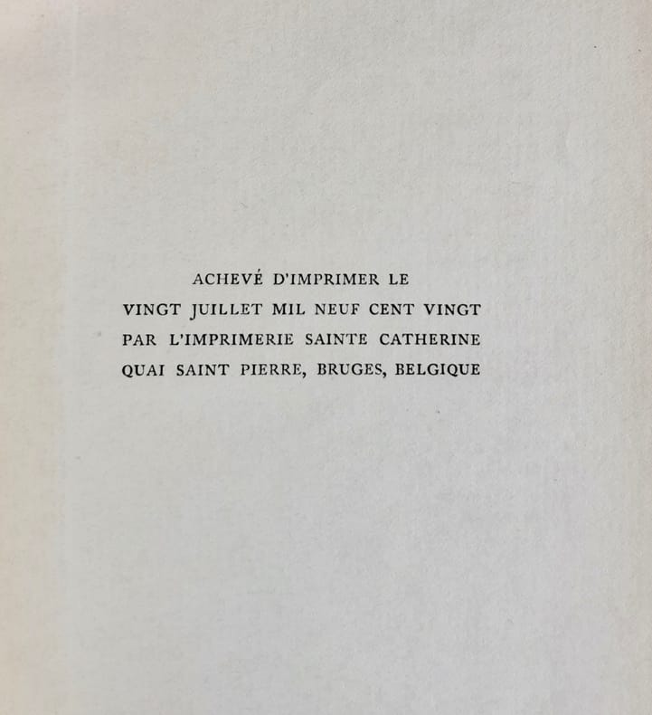 Paris : Nouvelle Revue française, achevé d'imprimer daté du 20 juillet 1920. Un volume 19,7x13cm cartonné à la bradel avec pièce de titre et auteur. Couverture conservée, 174 pages. Légers frottements en mors sinon bon exemplaire en reliure d’époque signée de Jean Stroobants de seconde édition (mention fictive de quatrième édition), après l'édition originale parue en 1913 au Mercure de France.