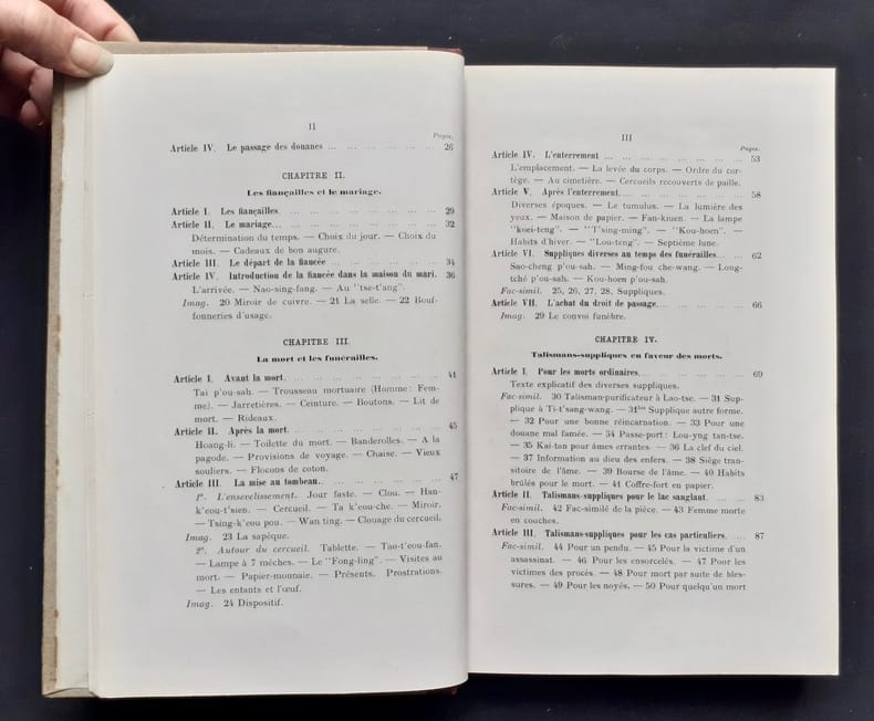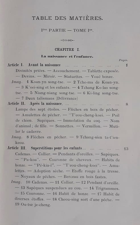 Premier volume de cet ouvrage de référence comprenant : La naissance et l'enfance, les fiancailles et le marriage, la mort et les funérailles, talismans-suppliques en faveur des morts, diverses superstitions pour les défunts, talismans-guérisseurs, porte-bonheur, amulettes, etc.