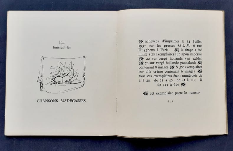Paris : Guy Lévis-Mano (GLM), juillet 1937. Un volume broché (22,3x19,5 cm) sous couverture brune, 43 pages. Neuf dessins de Jacques Dupont reproduits au trait. Edition originale à 610 exemplaires : 1/500 sur alfa crème. Bon état.