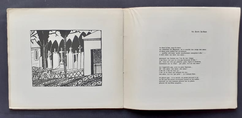 Paris : Editions "des poèmes", décembre 1924. Un volume (22x25cm) broché, sous couverture muette d'origine, (24) pages avec 6 dessins hors texte de Gaston Poulain reproduits au trait. Edition originale limitée à 200 exemplaires : 1/25 exemplaires sur vélin d'Arches teinté (n°16). Bon état. Belle impression de L. Beresniak. Exemplaire non coupé.