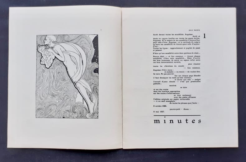 Illustré d'un portrait de l'auteur par Françoise Nicole reproduit en simili et fixé en frontispice, ainsi que d'un dessin reproduit au trait par la même. Edition originale. Tirage à 218 exemplaires, n°117 des 150 sur alfa des Papeteries Sorel-Moussel. [19]. !!! !!! Du 3 octobre au 24 octobre il n'y aura pas d'expédition de colis: le libraire est en voyage. La librairie reste ouverte et nous répondrons sporadiquement aux emails. Merci pour votre compréhension. ––> From 3 October to 24 October, there will be no parcel deliveries as the bookseller will be travelling. The bookshop will remain open and we will respond to emails sporadically. Thank you for your understanding.