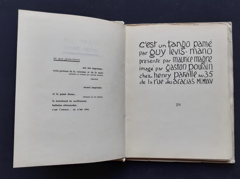 De 1923 à 1974 Guy Lévis Mano (1904-1980), ouvrier typographe et poète a imprimé et édité plus de 500 livres de poésie d'auteurs français et étrangers allant du surréalisme à Garcia Lorca, ou de Louise Labé à Andrée Chedid. "Le style typographique de G.L.M., qui fera rechercher ses livres dans l'avenir comme les plus représentatifs de notre époque, est parvenu à ce même équilibre heureux entre les audaces modernes et la plus sûre tradition."(Albert Béguin, 1949).