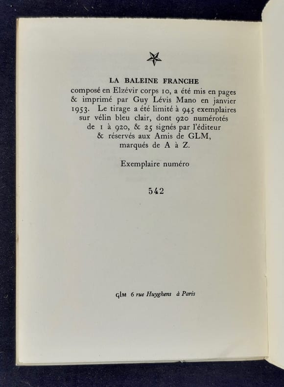 Paris Guy Levis Mano GLM 1953 In8 - broché - non coupé - 43 page - 3 illustrations hors texte - Tirage à 945 exemplaires