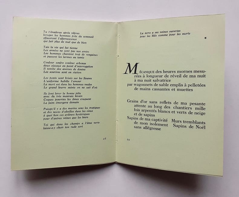 Paris : Guy Lévis Mano (GLM), septembre 1945. Un volume (15,9x11,4 cm) broché, 60 pages. Edition originale limitée à 787 exemplaires : 1/50 exemplaires sur vélin vert. Bon état.