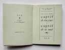 Edition originale. Tirage à 787 exemplaires, n°26 des 25 sur vélin de Rives (2ème papier). [221]. !!! !!! Du 3 octobre au 24 octobre il n'y aura pas d'expédition de colis: le libraire est en voyage. La librairie reste ouverte et nous répondrons sporadiquement aux emails. Merci pour votre compréhension. ––> From 3 October to 24 October, there will be no parcel deliveries as the bookseller will be travelling. The bookshop will remain open and we will respond to emails sporadically. Thank you for your understanding.