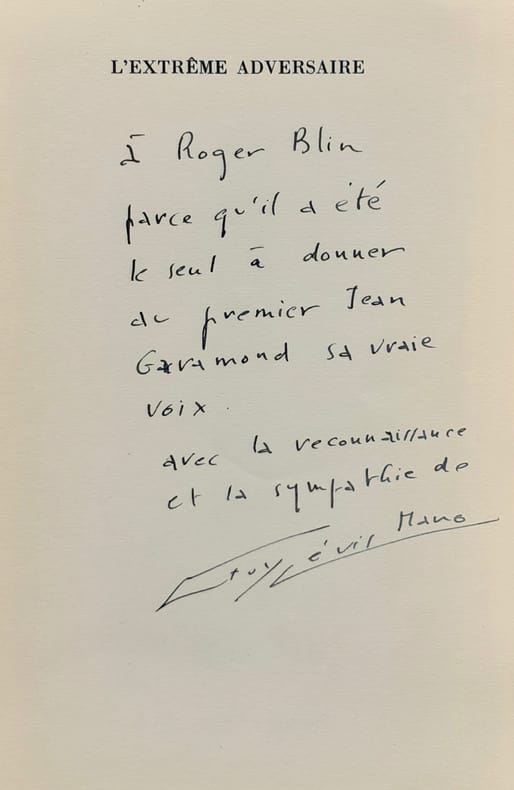Paris : Guy Lévis Mano (GLM), février 1954. Un volume (21,3x13,1 cm) broché, 40 pages. Edition originale limitée à 475 exemplaires numérotés : 1/ 430 sur vélin avec un envoi autographe signé de Guy Lévis Mano à Roger Blin. Couverture légèrement passée sur la première de couverture (3cm), dos recollé sans manque sinon bon état.