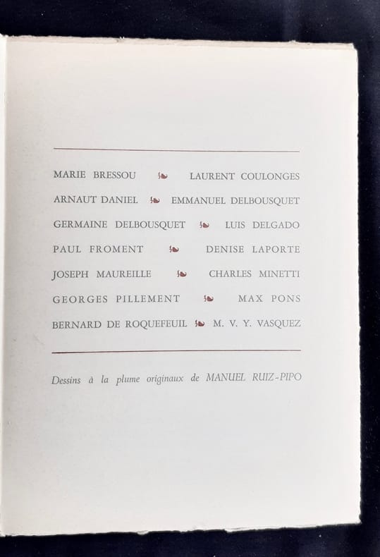 Saint-Front-sur-Lémance, directeur : Max Pons. Un volume 22,2x16,cm broché sous couverture illustrée, 50 pages illustrées de reproductions de dessins à la plume originaux de Manuel Ruiz-Pipo. Bon état. Un des 500 exemplaires sur vélin à la cuve numéroté.