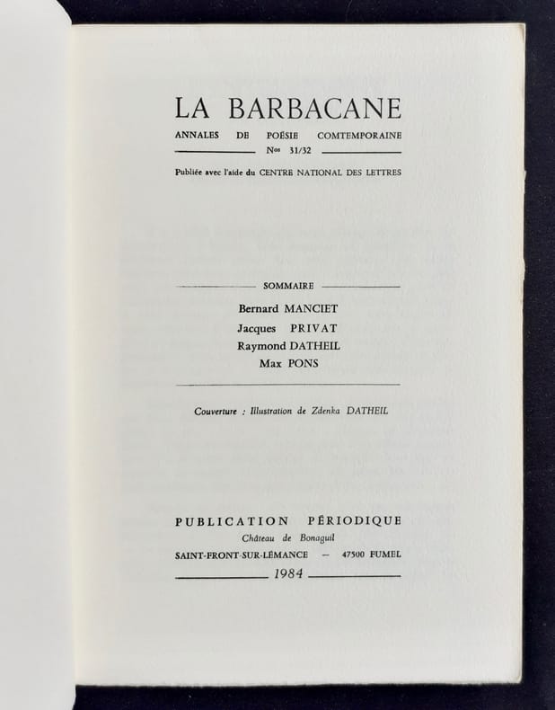 Belle revue littéraire imprimée en typographie par Alain Sanchez, animée par Max Pons durant plus de 50 ans, de 1963 jusqu'en 2016.