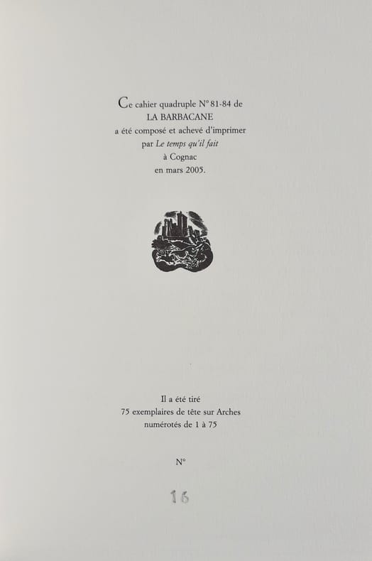 Fumel, directeur : Max Pons. Un volume 22,2x16,3 cm broché sous couverture illustrée, 128 pages. Tirage de tête: 1/75 exemplaires sur vélin d’Arches. Bon état.