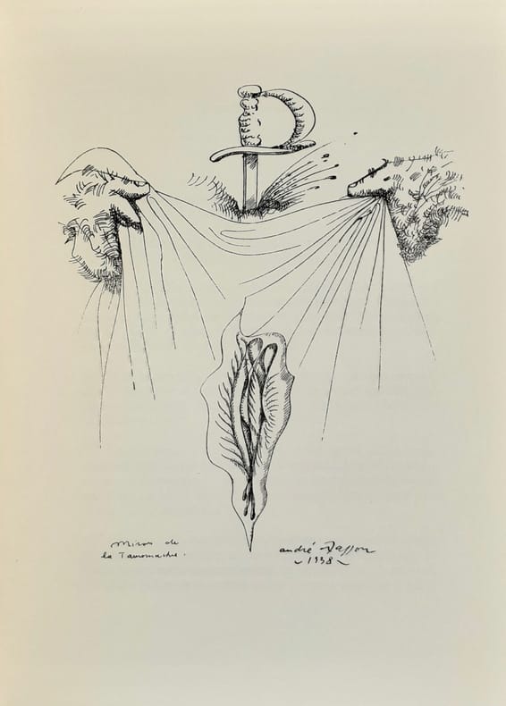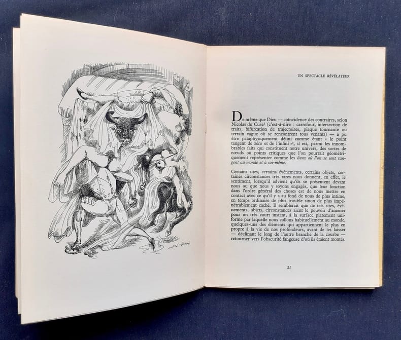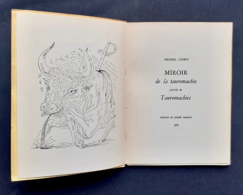 Illustré de quatre dessins d'André Masson reproduits au trait, dont un en frontispice. Tirage à 1220 exemplaires, n°1211. Réédition de "Miroir de la Tauromachie" accompagnée des trois dessins de l'édition originale de 1938 et de "Tauromachies" avec le frontispice de l'édition de 1937 (réf. Coron 159 et 188). [479].