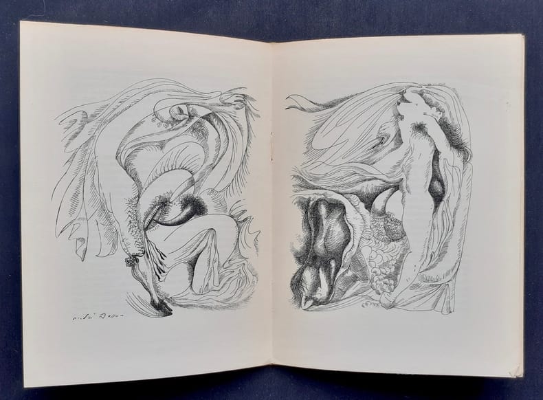 Paris. GLM. 1964. In-8 (143 x 192mm) broché, couverture jaune imprimée, 63 pages, 4 dessins à pleine page de André Masson. Exemplaire 247/1200 vélin Plutarque, après 20 sur Arches. Toute petite tache orange sur le 1er plat sinon très bel exemplaire, non coupé