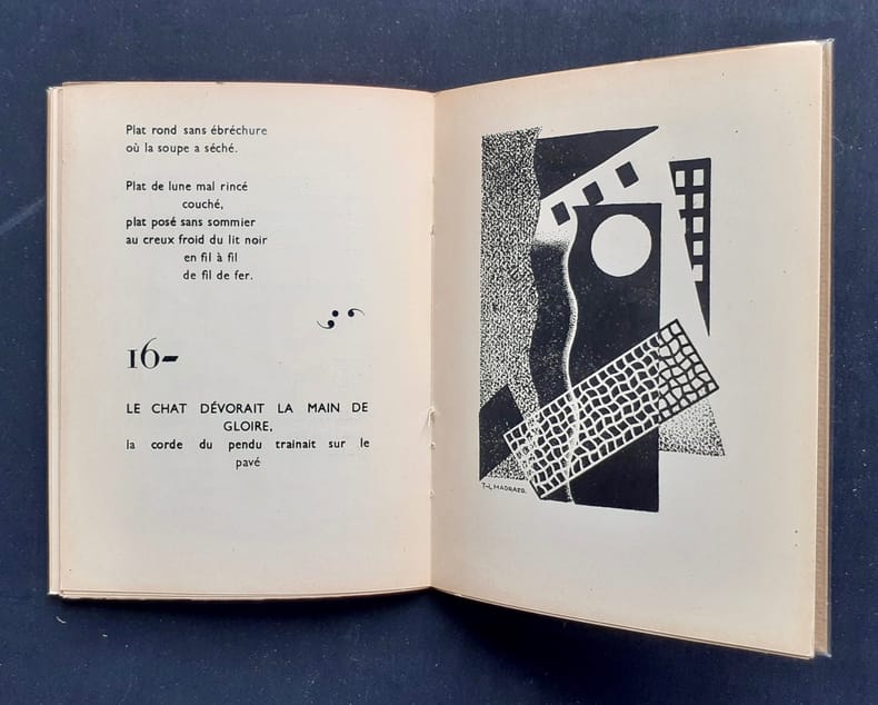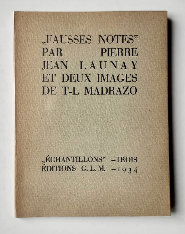 Paris : Guy Lévis Mano (GLM, collection "Echantillons" - 3), décembre 1933. Un volume (16,3x12,3 cm) broché, (40) pages. Avec 2 dessins de T-L Madrazo reproduits au trait. Edition originale tirée à 200 exemplaires numérotés sur vélin. Premier livre publié de Jean Launay. Bon état.