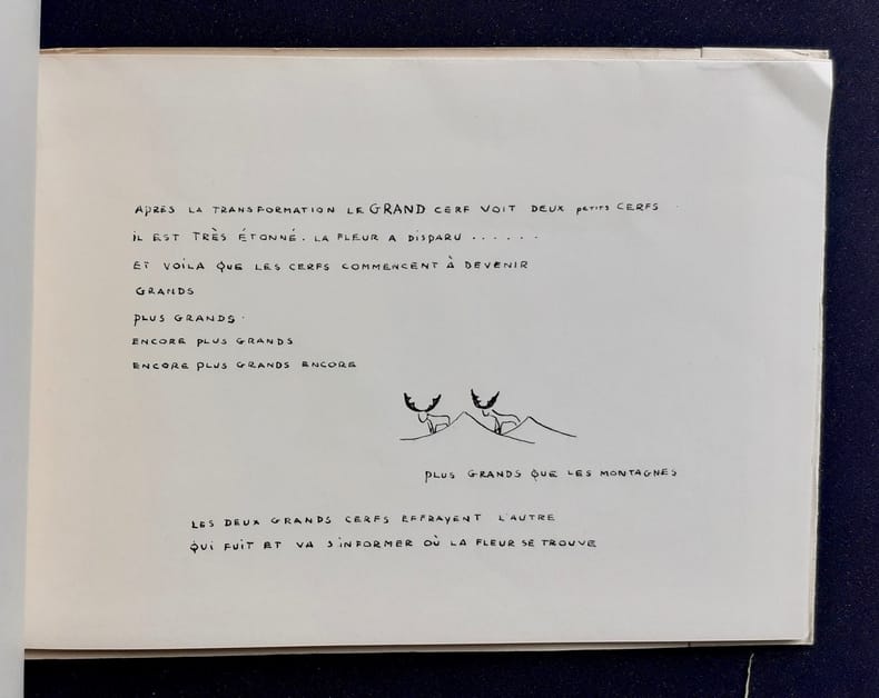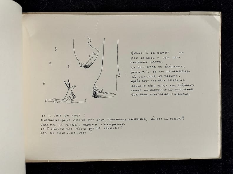 Paris : Guy Lévis Mano (GLM), mai 1947. Un volume (14,4x19,3 cm) broché, (36) pages. Avec 13 dessins de Tom Koreman accompagnés sur chaque feuillet du texte autographe de l'auteur, le tout reproduit au trait. Edition originale tirée à 375 exemplaires numérotés : 1/25 sur vélin réservés aux Amis de GLM, numérotés et signés par Guy lévis Mano. Bon état.