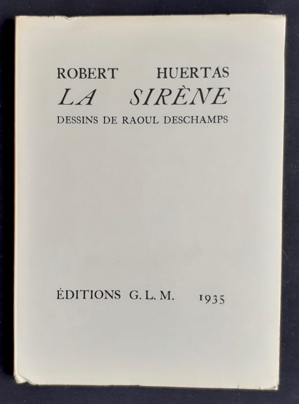 Paris: Guy Lévis Mano, décembre 1935. Un volume 19,5x14cm broché de (48) pages sous couverture blanche imprimée. Quatre dessins de Raoul Deschamps reproduits en simili sur papier glacé. Bon état. Édition originale tirée à 225 exemplaires: 1/200 exemplaires sur papier vélin.