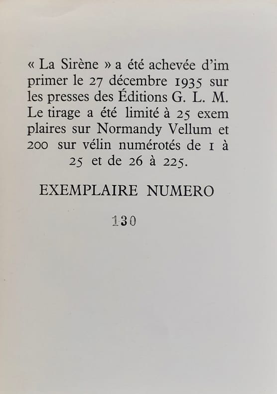 Editions G.L.M., 1935. In-8 broché, pagination absente. Edition originale. L'un des 25 exemplaires de tête sur Normandy Vellum, avant 200 sur vélin. Non coupé, en excellente condition.