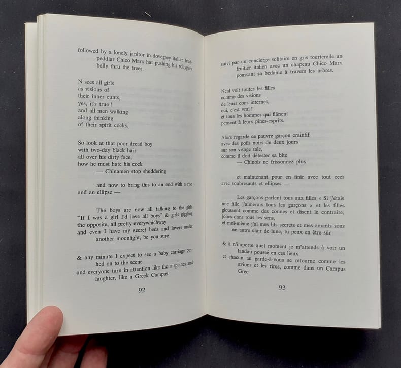 Poèmes traduits de l'américain par Mary Beach et Claude Pélieu - Edition bilingue - Paris : Christian Bourgois, 1972 - un volume 12x20cm broché sous couverture à rabats, 175 pages sur papier vergé - Exemplaire en bon état - Edition originale de la traduction française -