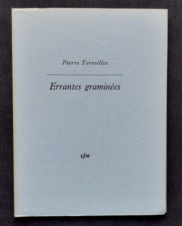 Pierre Torreilles (1921-2005), ancien résistant, poète et libraire, crée la Librairie Sauramps à Montpellier. Il est internationalement connu pour son amour et sa défense du livre, et a de toujours doublé sa vie publique d’une recherche poétique passionnée et exigeante. Il publie son premier recueil de poésie en 1953 chez G.L.M. Son grand ami René Char, lorsqu'il reçoit cet ouvrage, lui écrit : "Errantes graminées dans le jardin de Miró ! le livre est apparu en sa blancheur et sa couleur, Merci". Références : Les éditions G.L.M., 1923-1974, bibliographie. Bibliothèque nationale, 1981, n° 528. - P. Cramer, Joan Miró, Catalogue raisonné des livres illustrés, 1989, n° 142.