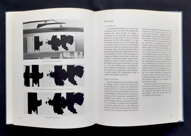 Genève : Skira (Collection "Les sentiers de la création"), 1980. Un volume 30,5x24,6 pleine toile imprimée et illustrée, 95 pages illustrée en noir et en couleurs. Manque la jaquette sinon bon état. Récit par l'artiste et ses collaborateurs de la réalisation de l'immense toile Reconciation Elegy.