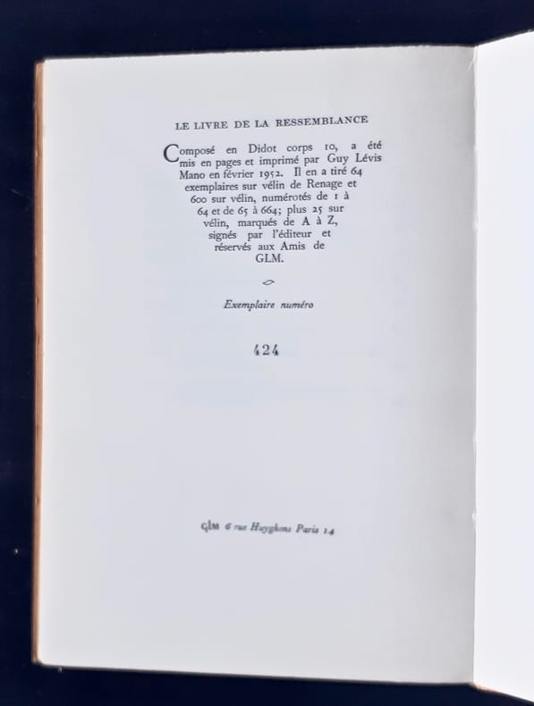 Paris: Guy Lévis Mano (GLM), février 1952. Un volume 19,5x14cm, broché de 48 pages sous couverture ocre jaune imprimée. Édition originale tirée à 685 exemplaires numérotés: 1/625 sur vélin. Bon état.