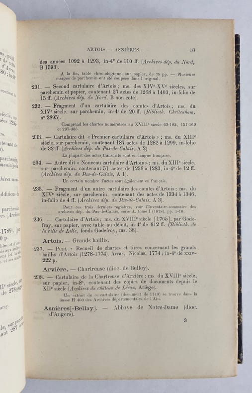 Ouvrage de référence proposant 4522 notices descriptives commentées de cartulaires civils et ecclésiastiques, suivies de tables. Couverture brunie, tr. un peu poussiéreuses. Intérieur en bonne condition, ex. non coupé. - Frais de port : -France 6,9 € -U.E. 11 € -Monde (z B : 18 €) (z C : 31 €)