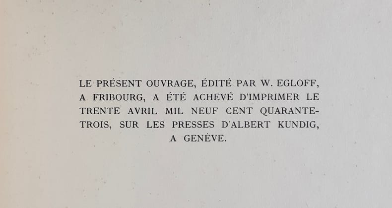 Fribourg. Editions de la Librairie de l'Université, 1943. In-4 br. E.O. ex. num. sur vélin chiffon.