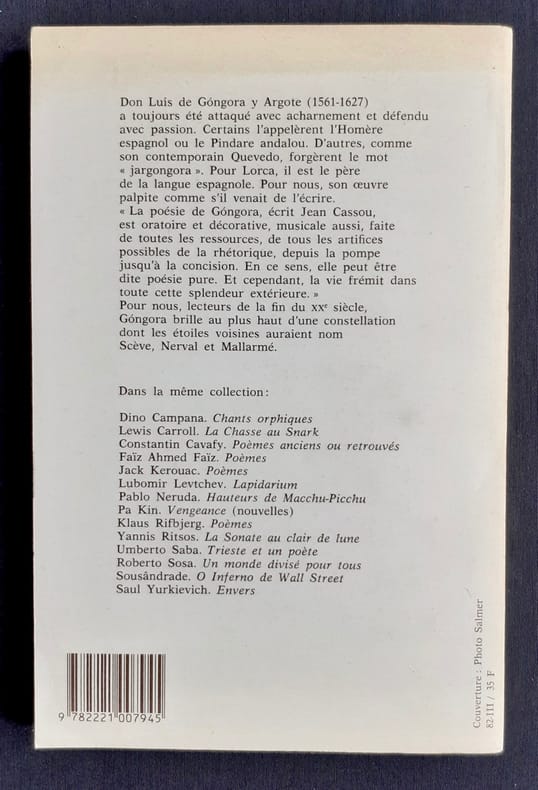"Traduit de l'espagnol par Pierre Darmangeat. Collection ""Autour du Monde"". Poésies. Classification Dewey : 860-Littératures espagnole et portugaise"