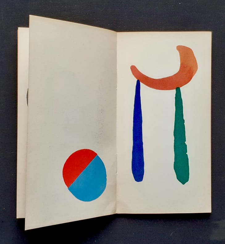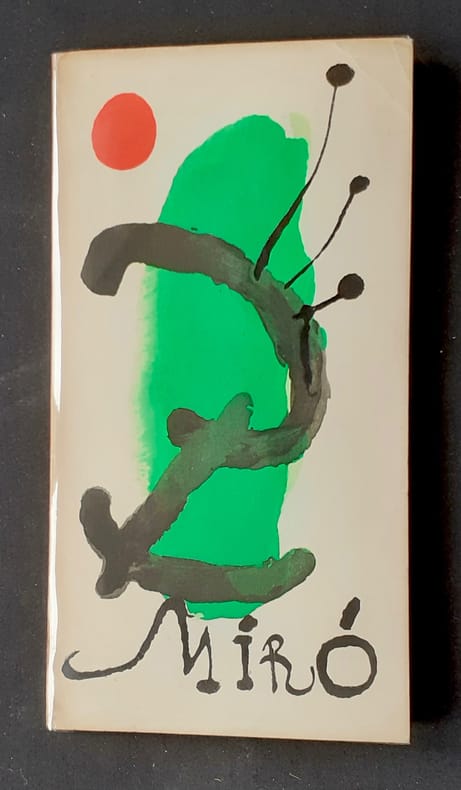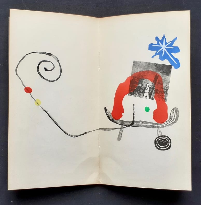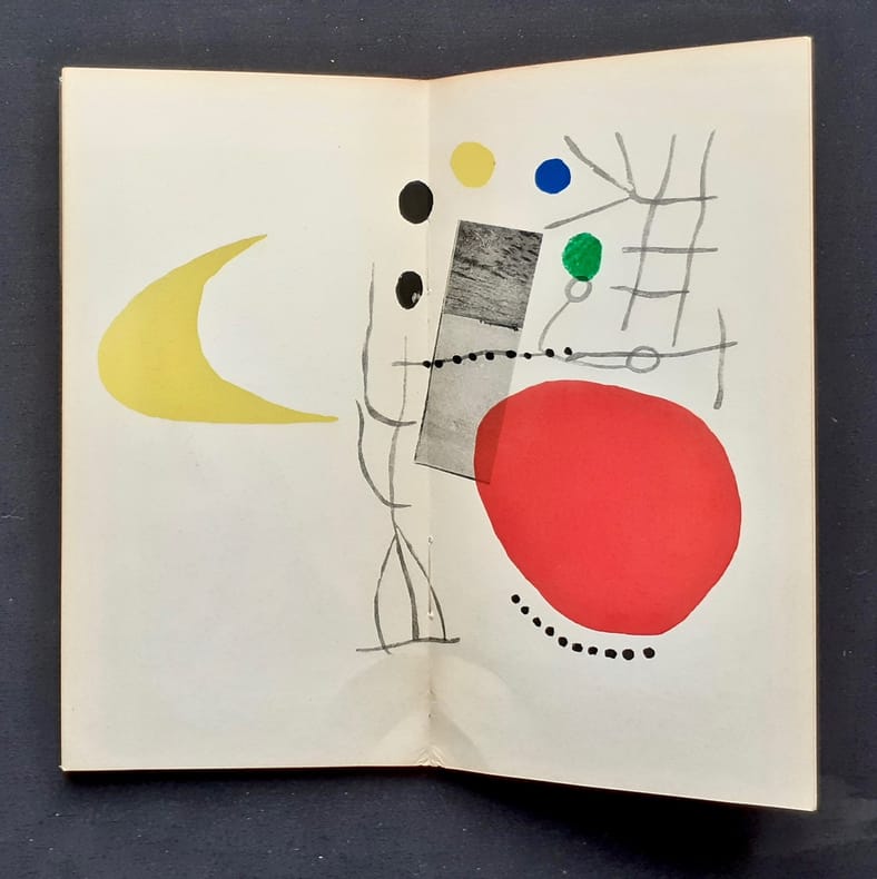 Paris : Berggruen & Cie, 1958. Un volume (22x11,8 cm) broché, (32) pages sur papier fort. Avec 19 lithographies en couleurs de Miro en pleine page (pochoirs et phototypie des ateliers Jacomet à Paris). Belle plaquette éditée à l'occasion de l'exposition à la galerie Berggruen à Paris du poème de Paul Eluard A toute épreuve illustré de gravures sur bois de Joan Miro, édité par Gérald Cramer à Genève (130 exemplaires). Dos et plats légèrement insolés sinon bel exemplaire.