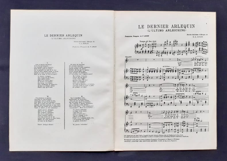 Paris : Editions Ricordi, sans date (ca 1923). Partition brochée (33,5x24,5cm) de 8 pages sous couverture illustrée par Loris Riccio. Bon état. Texte en français et italien.