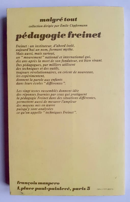 Paris : Editions François Maspero (Collection "Malgré tout"), 1977. Un volume broché (22x13,5 cm), 299 pages. Bon état. Comprend 19 reportages dans les classes et 3 témoignages. Index et bibliographie. Bon état.