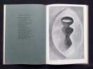 Catalogue de l'exposition présentée à la galerie Schwarz à Milan (Italie) en mai et juin 1965. Un volume 24,5x17,3cm broché de (32) pages avec 25 planches de photographies sur papier couché, avec poèmes de Arp (tirés du Siège de l'air), sur beaux papiers verts et gris. Liste des oeuvres exposées avec les prix de vente ajoutés au crayon (en lires italiennes). Joint le carton d'invitation au vernissage de l'exposition Arp au Musée d'Art Moderne de la Ville de Paris le 12 décembre 1986.