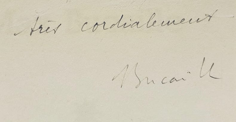 Paris : Le Messager Boiteux (Impression par Guy Lévis Mano), mai 1950. Un volume 18x13,8cm agrafé, de 20 pages avec 3 planches hors texte de collages de Max Bucaille. Tirage à 989 exemplaires : 1/980 sur Alfama. Exemplaire nominatif du photographe belge Georges Thiry. Avec un envoi autographe signé de Max Bucaille adressé à Georges Thiry, lequel a gommé son nom.