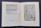 Le Message Boiteux , coll. "D'un Certain Prix", 1950, (16,5 x 22,5 cm) - 22 pages, couv. rempliée. Illustré de 23 images de Max Bucaille dans et hors-texte. Édition originale, un des 85 sur vélin de Hollande Van Gelder Zonen, contenant deux images supplémentaires inédites en hors-texte, tirées du cabinet secret de Max Bucaille. Joint le rare bulletin de souscription illustré.