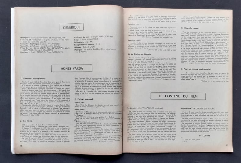 Paris : Union française des oeuvres laïques d'éducation par l'image et par le son. Directeur : Robert Dader. Un volume 27x20,8cm agrafé sous couverture illustrée : Agnès Varda sur le tournage de Cléo de 5 à 7. 44 pages illustrées en noir. comprend un dossier sur La Pointe courte, de Agnès Varda : présentation biographique d'Agnès Varda, contenu du film : dialogues et analyse par Michel Tardy. Bibliographie. Bon état.