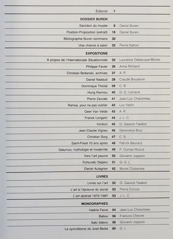 Paris, directeur Georges Fall. Un volume broché 29x21,8cm, de 80 pages sur papier fort couché, illustrées en noir et en couleurs. Comprend un dossier Buren (33 pages). Très bon état.