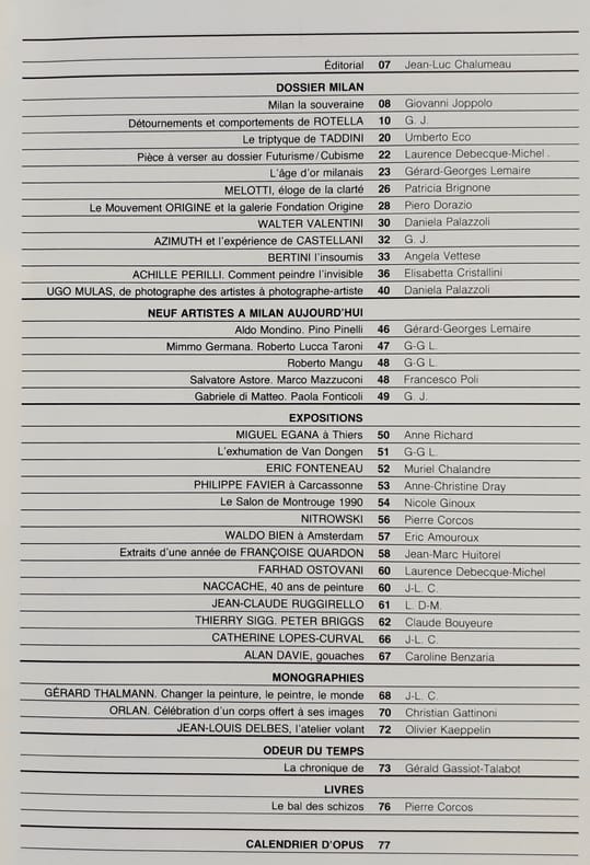 Paris, directeur Georges Fall. Un volume broché 29x21,8cm, de 80 pages sur papier fort couché, illustrées en noir et en couleurs. Comprend un dossier sur la scène de l'art à Milan (49 pages). Très bon état.