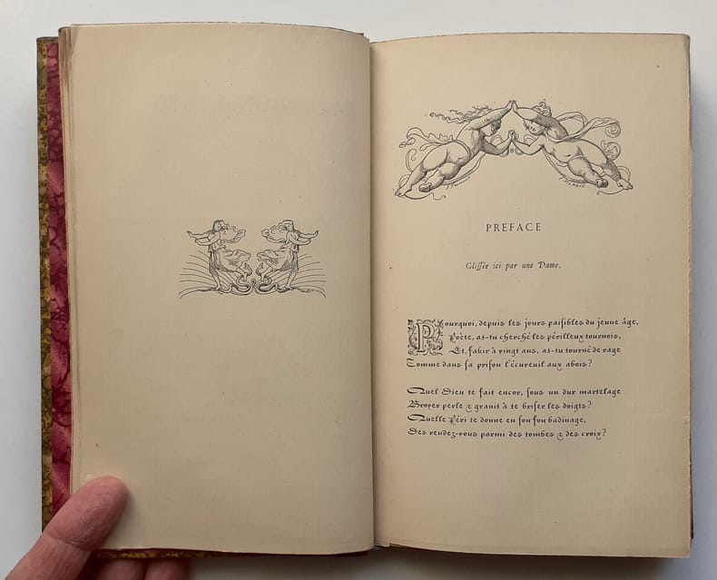 Lyon : Imprimerie Alf. Louis Perrin et Marinet, 1877. Demi-basane (20,4x13,5 cm), dos à nerfs orné du titre, auteur et fleurons dorés, couverture sur papier doré et moiré conservée, XII et 187 pages. Vignettes d' Eugène Froment. Edition originale par souscription tirée à 500 exemplaires : 1/450 sur papier teinté. Bon état.