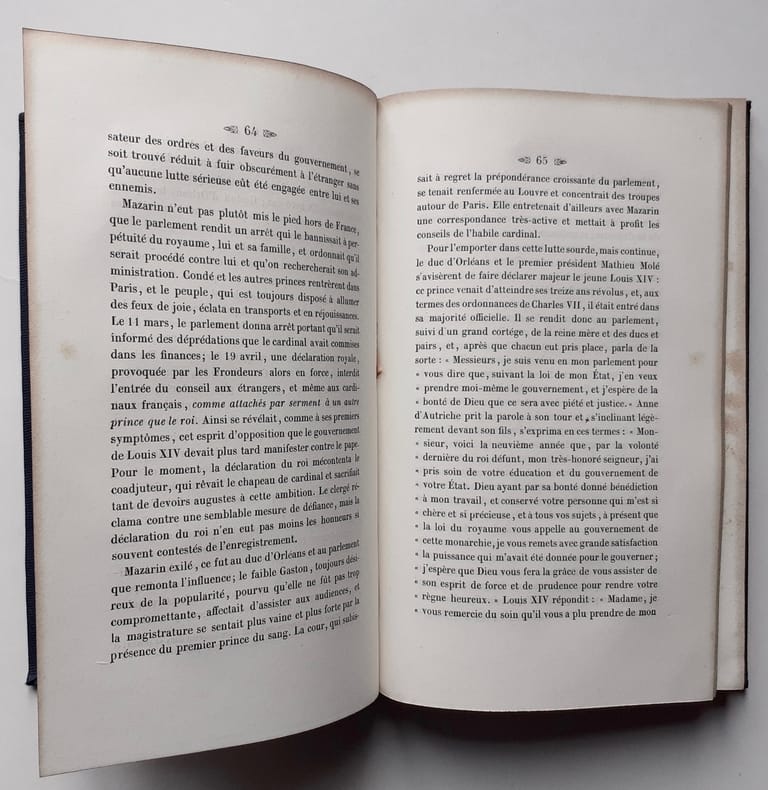P., Foucault, 1828-1829, 5 vol. in-8°, 432, 475, 451, 464 et 460 pp, reliures demi-veau glacé caramel à coins, dos à 4 larges nerfs filetés, caissons à froid, pièces de titre et tomaison basane noire, roulette dorée en queue, tranches marbrées (rel. de l'époque), C. de bibl., coiffe sup. arrasée au 1er volume, étiquettes en queue, bon état (Coll. complète des Mémoires relatifs à l'histoire de France, depuis l'avènement de Henri IV jusqu'à la paix de Paris conclue en 1763 ; avec des notices sur chaque auteur, et des observations sur chaque ouvrage, par Messieurs A. Petitot et Monmerqué). Exemplaires trés bien reliés à l'époque