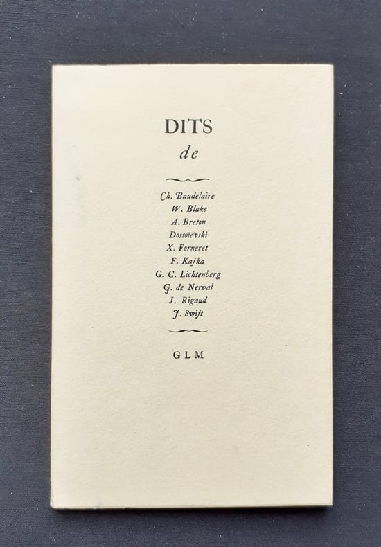 Paris, GLM 1947, 140x95mm, 47pages, broché. En feuille sous sous couverture. Papier cristal d’origine conservé. Un des 300 exemplaires sur papier vélin du Marais, numéroté n.° 57 / 315. Bel exemplaire.