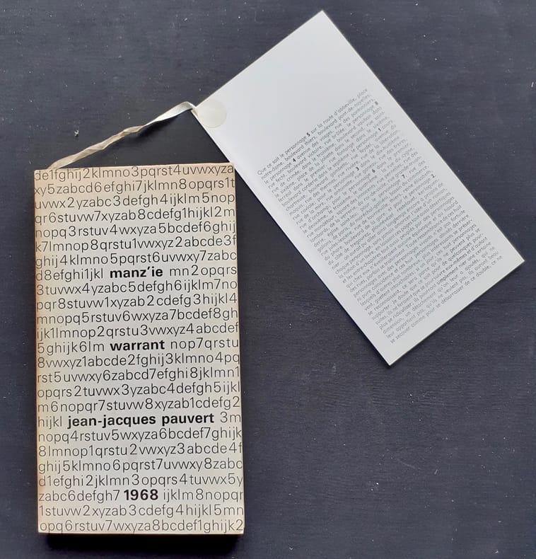 Paris : Editions Jean-Jacques Pauvert, 1968. Un volume broché (22,3x12,7 cm), 214 pages. Edition originale avec un envoi autographe signé de Manz'ie. Joint catalogue des éditions Jean-Jacques Pauvert : une feuille libre en 3 volets. Couverture jaunie au dos et quelques rousseurs en tranche sinon bon état.