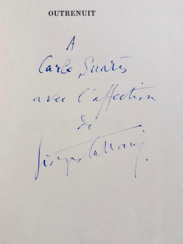 Paris: Guy Lévis Mano, octobre 1949 . Un volume 18,8x11,2cm, broché de 52 pages sous couverture imprimée. Édition originale tirée à 400 exemplaires numérotés: 1/380 sur alfama. Couverture légèrement défraichie sinon bon état. Envoi autographe signé de Georges Cattaui adressé à Carlo Suarès.