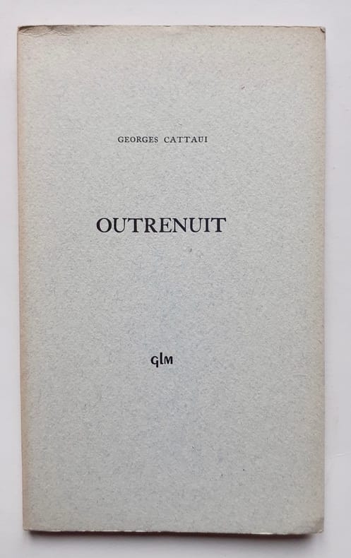Paris: Guy Lévis Mano, octobre 1949 . Un volume 18,8x11,2cm, broché de 52 pages sous couverture imprimée. Édition originale tirée à 400 exemplaires numérotés: 1/380 sur alfama. Couverture légèrement défraichie sinon bon état. Envoi autographe signé de Georges Cattaui adressé à Carlo Suarès.