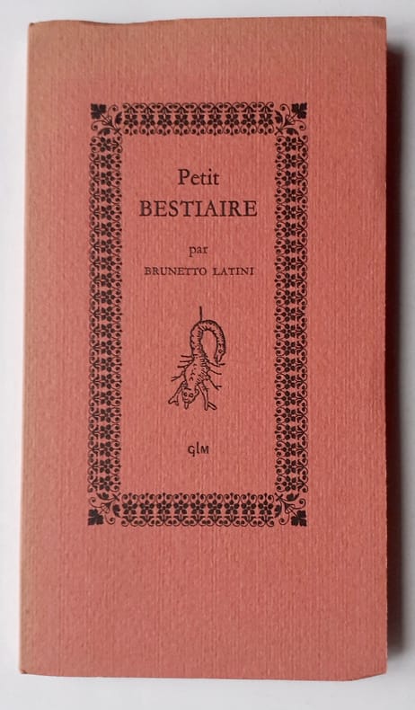 Paris: Guy Lévis Mano, octobre 1967. Un volume 17,3x9,6cm, broché de 68 pages sous couverture imprimée. Exemplaire en bon état. Édition originale tirée à 985 exemplaires numérotés: 1/965 ex. sur papier vélin. Extrait du «Livre dou Trésor», par Brunetto Latini (1230-1294).