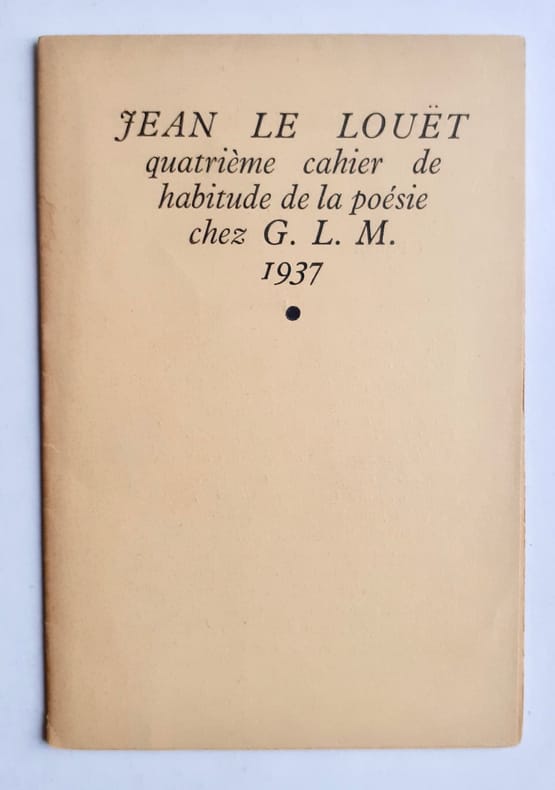 Paris: Guy Lévis Mano (Collection «Habitude la poésie»), 1937. Un cahier 13,5x9,4cm agrafé de (16) pages sur papier beige satiné. Édition originale.