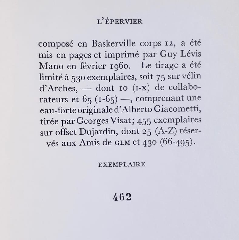 Paris : Guy Lévis Mano (GLM), février 1960. 1 volume (19,5x14,4 cm), 48 pages. Edition originale tirée à 530 exemplaires : 1/455 sur offset. Bon état.