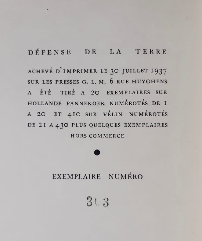 GLM Broché 1937 In-8 (12 X 19 cm), 68 pages, exemplaire n°262/410 de l'édition originale de 1937 tiré sur papier Vélin, non-coupé, préface de Léon-Paul Fargue ; coiffes et bords frottés, des marques d'usage aux plats défraîchis, assez bel état. Livraison a domicile (La Poste) ou en Mondial Relay sur simple demande.
