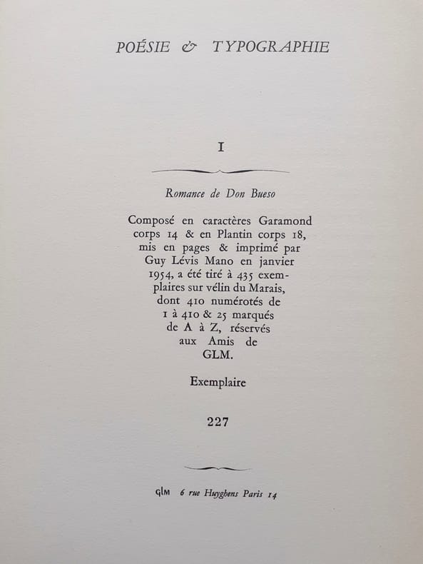 De 1923 à 1974 Guy Lévis Mano (1904-1980), ouvrier typographe et poète a imprimé et édité plus de 500 livres de poésie d'auteurs français et étrangers allant du surréalisme à Garcia Lorca, ou de Louise Labé à Andrée Chedid. "Le style typographique de G.L.M., qui fera rechercher ses livres dans l'avenir comme les plus représentatifs de notre époque, est parvenu à ce même équilibre heureux entre les audaces modernes et la plus sûre tradition."(Albert Béguin, 1949).