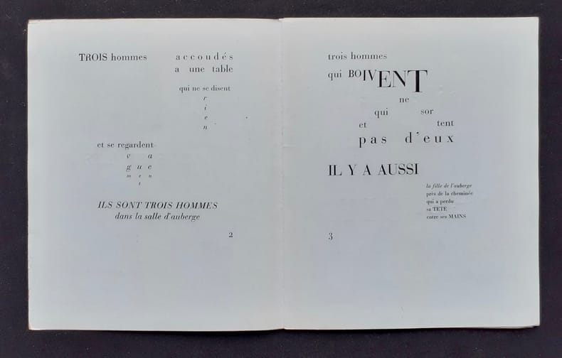 Paris GLM 1933 1 vol. broché plaquette in-8 carrée, en feuilles, sous portefeuille de canson noir, 12 pp. Edition originale de ce très bel exercice "typoétique", tiré uniquement à 135 exemplaires, celui-ci numéroté sur couché azur [Coron, GLM, 39]. Portefeuille usagé.